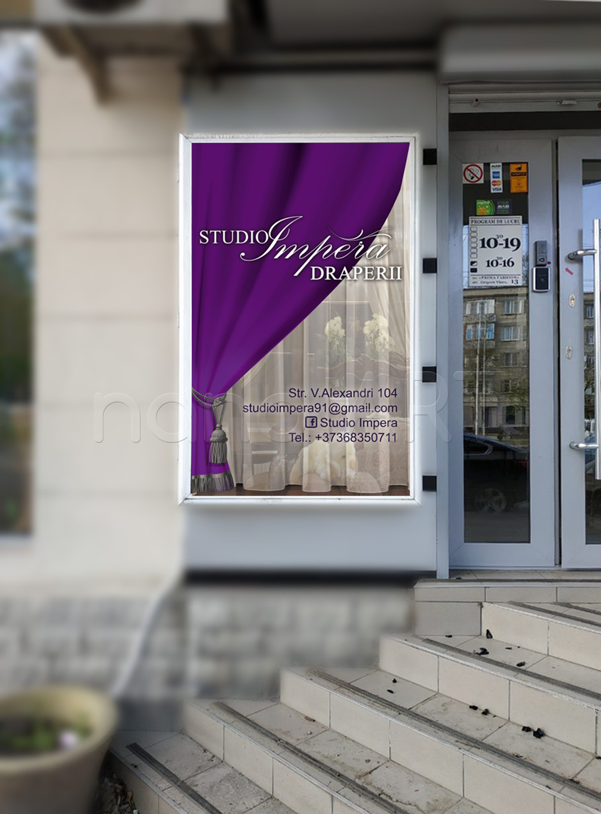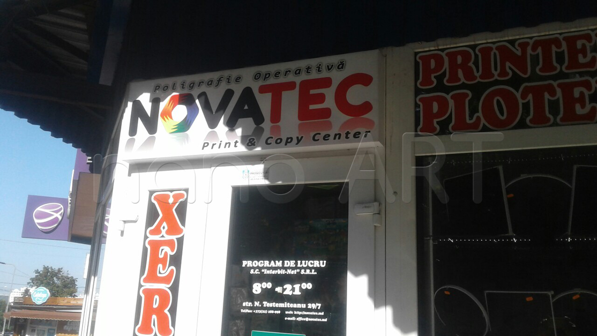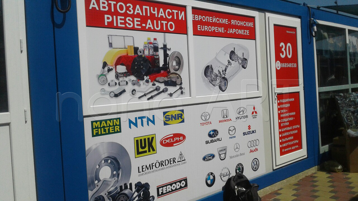Монтажники рекламного агенства полного цикла «Nano-Art Group» выполняют поклейку пленки (оклейку оракалом) в Кишиневе. Вы можете заказать у нас качественную печать на пленке вместе с услугой монтажа на объекте.